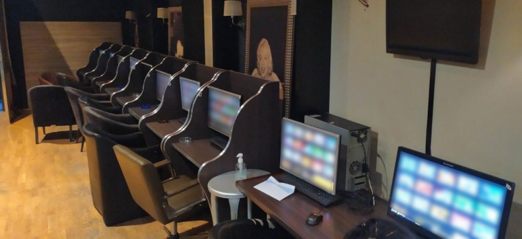 Όπως διαπιστώθηκε, στο κατάστημα είχαν εγκατασταθεί ηλεκτρονικοί υπολογιστές για τη διενέργεια παράνομων διαδικτυακών τυχερών παιγνίων, η διαχείριση των οποίων γινόταν μέσω δύο υπολογιστών – server, καθώς και παιγνιομηχανήματα μεγάλου μεγέθους, τύπου «φρουτάκια».