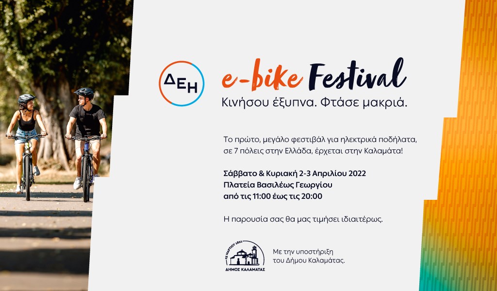 Η πόλη της Καλαμάτας είναι ο επόμενος σταθμός του ΔΕΗ E-Bike Festival, του πρώτου, μεγάλου φεστιβάλ αποκλειστικά για ηλεκτρικά ποδήλατα στην Ελλάδα.