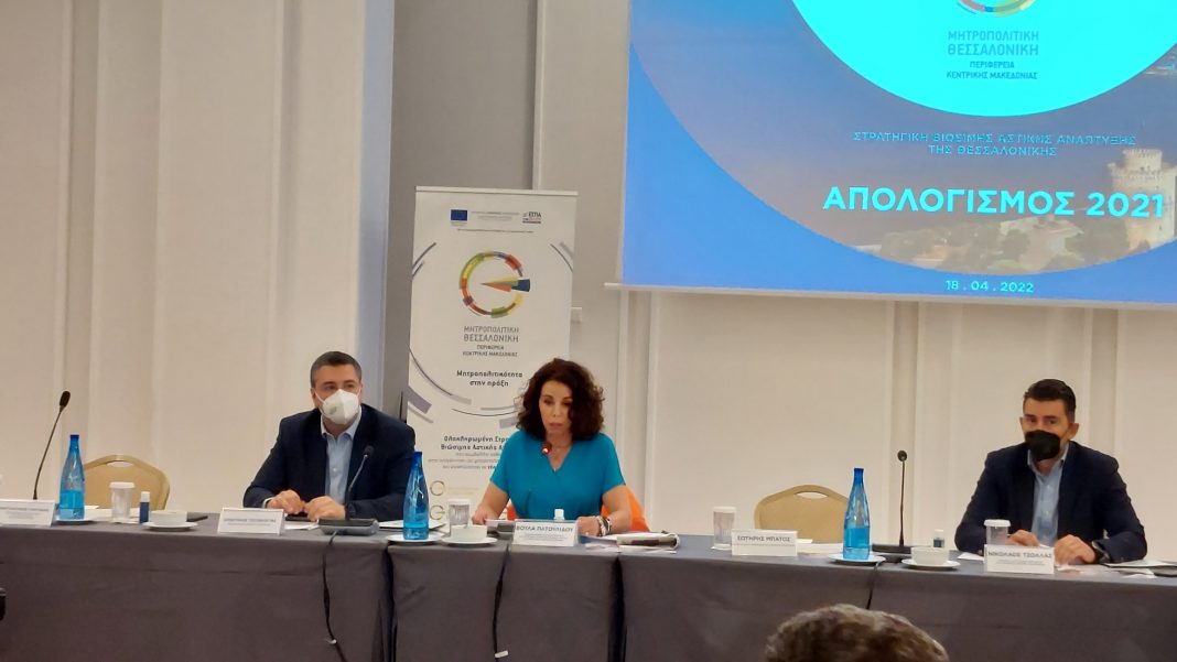 Από την πλευρά της, η αντιπεριφερειάρχης Θεσσαλονίκης Βούλα Πατουλίδου τόνισε ότι «για πρώτη φορά εφαρμόζεται τόσο αποτελεσματικά το καινοτόμο μοντέλο της Μητροπολιτικής διοίκησης», ενώ επισήμανε ότι υλοποιούνται 126 έργα σε οκτώ δήμους. Σε αυτά περιλαμβάνονται αναπλάσεις πάρκων και πλατειών, διαμορφώσεις χώρων πρασίνου, βιοκλιματικές σχολικές αυλές και φυτεμένα δώματα, φεστιβάλ ανακύκλωσης, έργα αναβάθμισης δεξιοτήτων νέων επιστημόνων, έργα πρόνοιας, δράσεις αναβάθμισης δομών σε σχολεία και ΚΑΠΗ, εκσυγχρονισμοί του δημοτικού φωτισμού κ.ά.