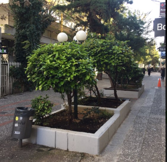 – Διαπλάτυνση των πεζοδρομίων στις οδούς Σοφοκλή Βενιζέλου, Αριστοφάνους, Αριστείδου, Αριστοτέλους, Παπάγου, Καραολή & Δημητρίου, Ολυμπιονικών.