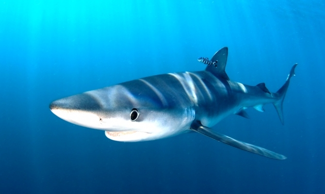 Ένας πανέμορφος γαλάζιος καρχαρίας έκανε την εμφάνισή του στα διαυγή νερά του Μύτικα Αιτωλοακαρνανίας.