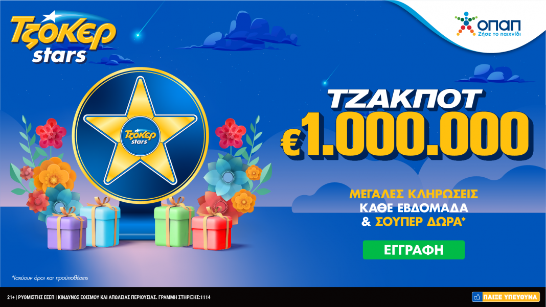 Για τα πρόγραμμα επιβράβευσης ΤΖΟΚΕΡ Stars ισχύουν όροι και προϋποθέσεις. Οι παίκτες μπορούν να μάθουν περισσότερα μέσω του tzoker.gr και της εφαρμογής ΤΖΟΚΕΡ.