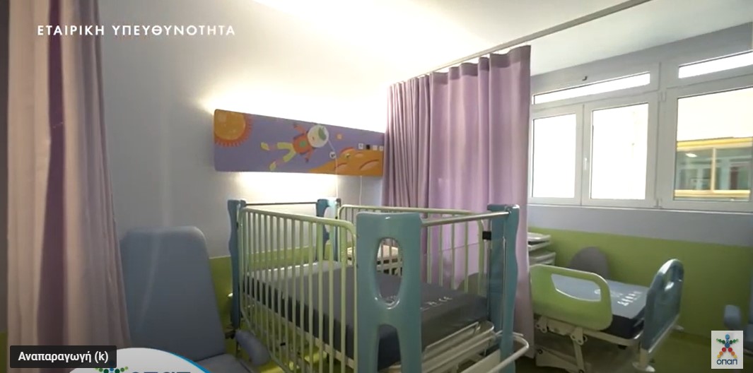 Το έργο της ανακαίνισης των παιδιατρικών νοσοκομείων «Η Αγία Σοφία» και «Παναγιώτης και Αγλαΐα Κυριακού» ξεκίνησε το 2014, στο πλαίσιο του προγράμματος Εταιρικής Υπευθυνότητας του ΟΠΑΠ. Πρόκειται για μία σημαντική επένδυση στη δημόσια υγεία, στο πλαίσιο της οποίας πραγματοποιήθηκαν 30 έργα ανακαίνισης, συνολικής επιφάνειας 14.960 τ.μ., στα οποία συμπεριλαμβάνονται 23 νοσηλευτικές μονάδες διεθνών προδιαγραφών και δυναμικότητας 564 κλινών.