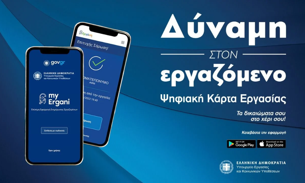 Οι εργαζόμενοι θα πρέπει να «κατεβάσουν» στο κινητό τους τηλέφωνο την εφαρμογή myErgani mobile app η οποία είναι διαθέσιμη δωρεάν στις πλατφόρμες Google Play (https://play.google.com/store/apps/details?id=gr.gov.myergani) και App Store (https://apps.apple.com/us/app/myergani/id1624483175), μέσω των επίσημων λογαριασμών του Υπουργείου Εργασίας και Κοινωνικών Υποθέσεων.