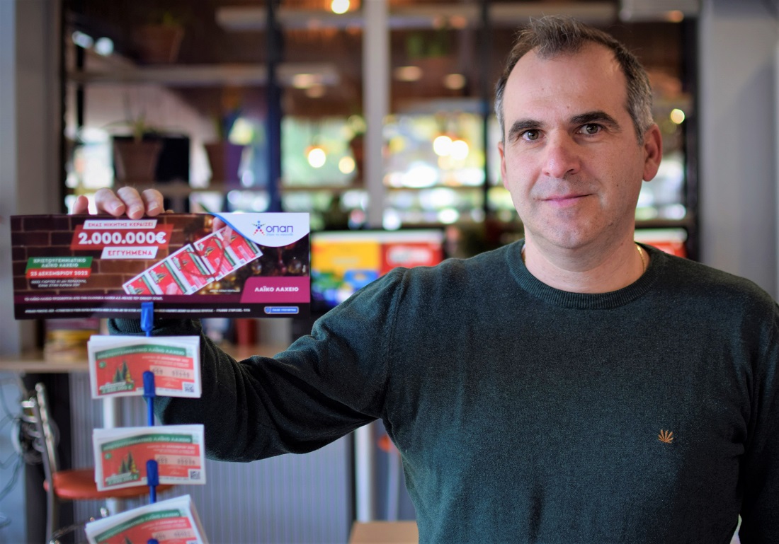 Ξεχωριστά θα είναι τα εφετινά Χριστούγεννα για έναν ή περισσότερους τυχερούς, καθώς το Λαϊκό Λαχείο μοιράζει εγγυημένο έπαθλο ύψους 2.000.000 ευρώ στην κλήρωση της Παρασκευής, 23 Δεκεμβρίου. «Οι ειδικές Χριστουγεννιάτικες κληρώσεις του Λαϊκού Λαχείου προσελκύουν κάθε χρόνο το ενδιαφέρον του κόσμου. Πολλοί αγοράζουν λαχνούς και τους χαρίζουν σαν δώρο στα αγαπημένα τους πρόσωπα για τις γιορτές», σχολιάζει ο Βαγγέλης Αγγελής, ιδιοκτήτης καταστήματος ΟΠΑΠ στη Νέα Κηφισιά.