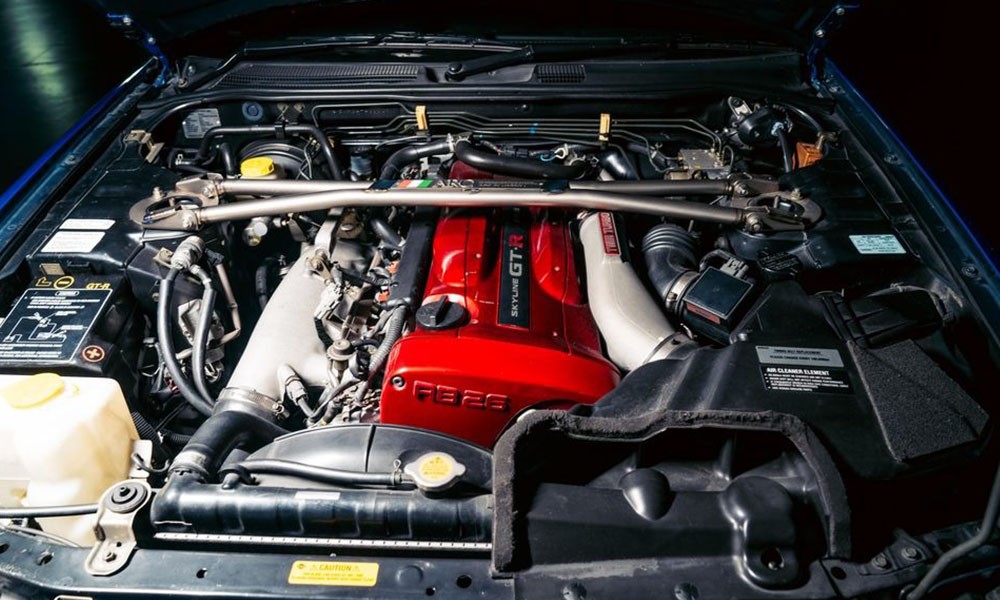 Πρόκειται για ένα R34, τη σπανιότερη και πιο επιθυμητή γενιά του σύγχρονου GT-R, βαμμένο στο Bayside Blue, το πιο εμβληματικό χρώμα στην παλέτα του. Το αυτοκίνητο μεταφέρθηκε στις ΗΠΑ και τροποποιήθηκε από την Kaizo Racing, αρχικά με σκοπό να βγάλει νόμιμα πινακίδες.
