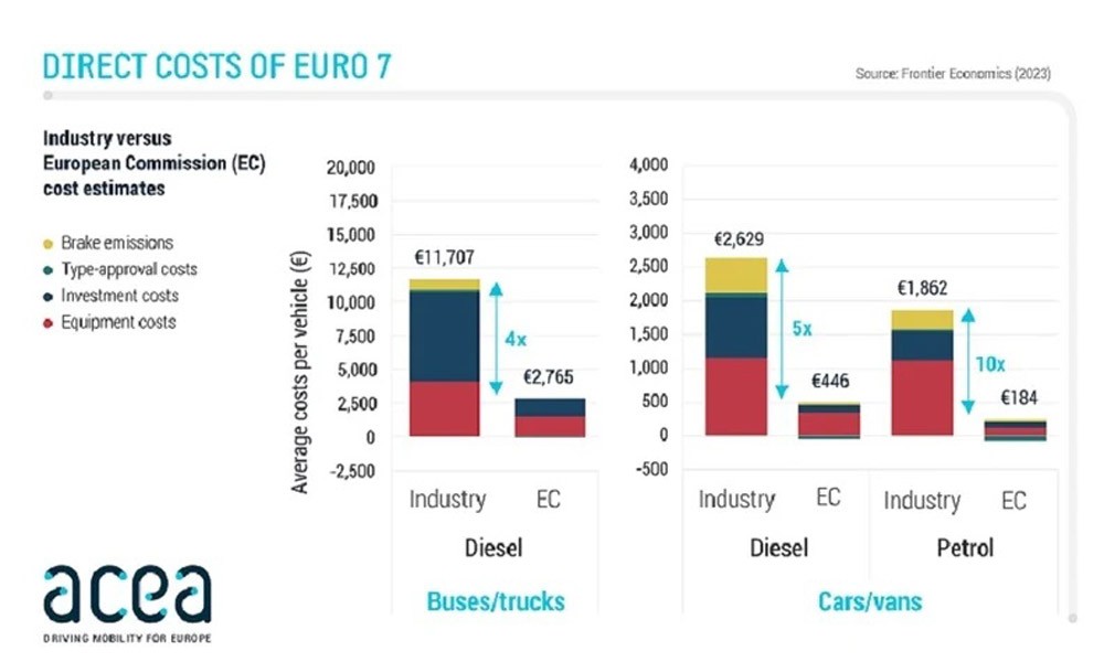 Συγκεκριμένα, η Κομισιόν ανέφερε ότι -κατά μέσο όρο- το κόστος ανά παραγόμενο καινούργιο επιβατικό ή ελαφρό επαγγελματικό αυτοκίνητο θα είναι 184 ευρώ. Όμως, η έρευνα του ACEA αναφέρει ότι αυτό θα είναι 1.862 ευρώ.