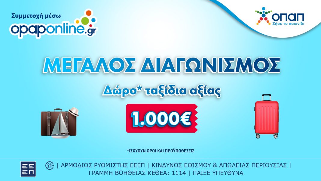 Τη δυνατότητα να διεκδικήσουν δωρεάν ταξίδια αξίας 1.000 ευρώ έχουν όλοι όσοι επισκέπτονται το opaponline.gr μέχρι και τις 31 Μαρτίου.