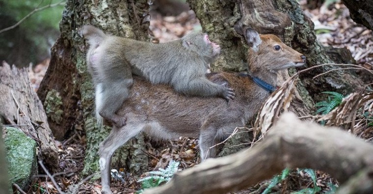 Μακάκας προσπαθεί να κάνει σεξ με δύο θηλυκά ελάφια (βίντεο)