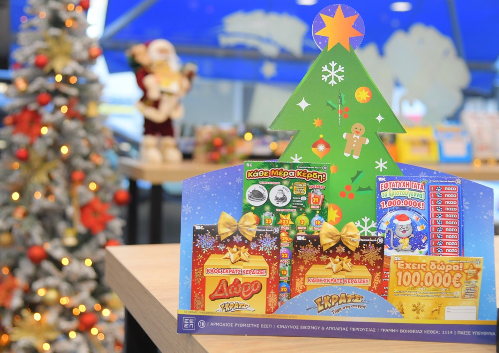 Το ΣΚΡΑΤΣ ημερολόγιο «ΚΑΘΕ ΜΕΡΑ ΚΕΡΔΗ», το οποίο κοστίζει 5 ευρώ, μοιράζει κέρδη έως και 500.000 ευρώ. Οι παίκτες αποκαλύπτουν ένα πεδίο κάθε ημέρα, σαν μια αντίστροφη μέτρηση για τη νέα χρονιά. Υπάρχουν 30 συν 1 ευκαιρίες για κέρδη. Τέλος, το ΣΚΡΑΤΣ «ΕΦΤΑΤΥΧΗ ΓΑΤΑ τα Χριστούγεννα!» κοστίζει 10 ευρώ, με το μέγιστο έπαθλο που μπορεί να διεκδικήσει κάποιος να ανέρχεται σε 1.000.000 ευρώ.