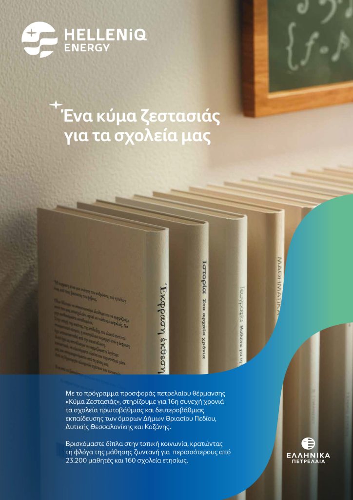 Η HELLENiQ ENERGY στηρίζει και αυτόν τον χειμώνα τη δημόσια Εκπαίδευση προσφέροντας, μέσω των θυγατρικών της εταιρειών ΕΛΛΗΝΙΚΑ ΠΕΤΡΕΛΑΙΑ και ΕΚΟ, δωρεάν πετρέλαιο θέρμανσης στα σχολεία των όμορων με τις εγκαταστάσεις της Δήμων, σε Δυτική Αττική, Δυτική Θεσσαλονίκη και Κοζάνη.