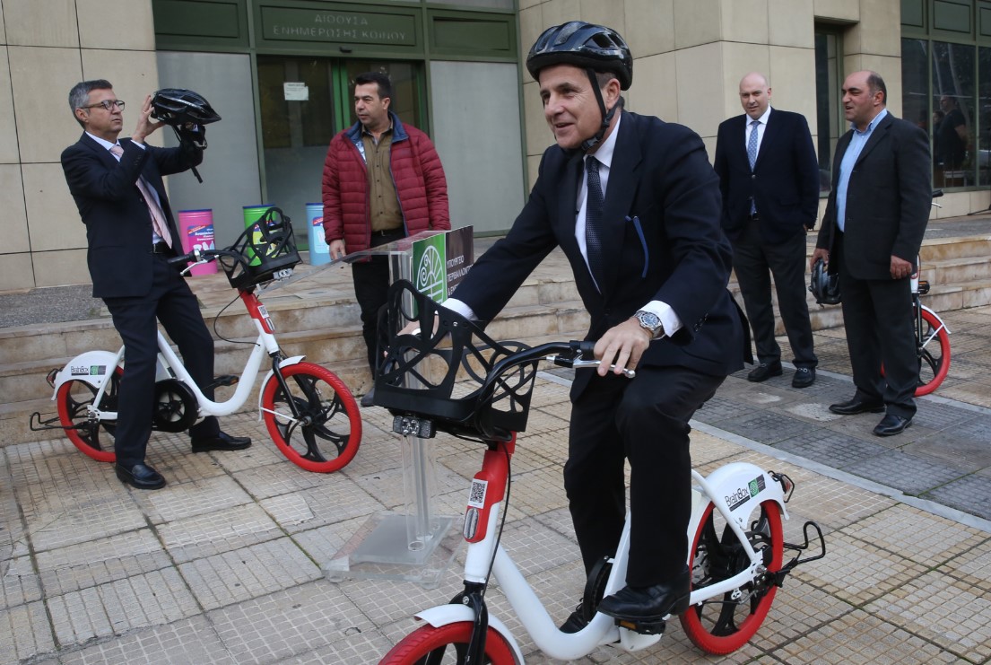 Τα πρώτα ηλεκτρικά αυτοκίνητα και ποδήλατα που παρέλαβε και θα χρησιμοποιήσει αποκλειστικά για υπηρεσιακές ανάγκες, παρουσίασε σήμερα το υπουργείο Περιβάλλοντος και Ενέργειας. Ο υπουργός Κωστής Χατζηδάκης παρακολούθησε τη Γενική Γραμματέα Ενέργειας, Αλεξάνδρα Σδούκου να εξηγεί αναλυτικά τη χρήση των αυτοκινήτων που είναι μηδενικών ρύπων, παντελώς αθόρυβα και περιορίζουν σημαντικά το κόστος λόγω της χαμηλής κατανάλωσης. Στη συνέχεια ο γενικός γραμματέας Χωρικού Σχεδιασμού, Ευθύμιος Μπακογιάννης, μίλησε για τα ποδήλατα τα οποία ξεκλειδώνουν μέσω εφαρμογής με smartphone, δεν χρειάζονται φόρτιση και χρησιμοποιούνται στις περισσότερες Ευρωπαϊκές πρωτεύουσες.